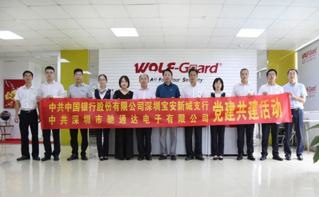 活動(dòng)期間,中行領(lǐng)導(dǎo)一行在馳通達(dá)集團(tuán)董事長(zhǎng)萬騰馳陪同下,實(shí)地參觀考察了馳通達(dá)黨建文化建設(shè)長(zhǎng)廊和智慧安全防護(hù)演示廳,通過學(xué)習(xí)觀摩與雙向交流,進(jìn)一步統(tǒng)一了雙方黨員干部的思想認(rèn)識(shí),更加深刻理解企業(yè)文化的內(nèi)涵。中國(guó)銀行深圳寶安支行鐘俊副行長(zhǎng)對(duì)馳通達(dá)黨支部建設(shè)成果給予了充分肯定,對(duì)馳通達(dá)很早就獲得深圳市、區(qū)、街道“兩新工委先進(jìn)基層黨組織、街道先進(jìn)基層黨組織”等眾多榮譽(yù)表示贊賞。馳通達(dá)集團(tuán)董事長(zhǎng)萬騰馳表示,馳通達(dá)黨支部已成為教育黨員職工“爭(zhēng)先創(chuàng)優(yōu)”的重要陣地,馳通達(dá)始終堅(jiān)持“把黨員培養(yǎng)成骨干、把骨干發(fā)展為黨員”的用人理念,讓馳通達(dá)黨員和企業(yè)員工時(shí)刻感受到黨的溫暖。此舉與中國(guó)銀行深圳新城支行黨支部的理念不謀而合,作為黨建結(jié)對(duì)共建單位,雙方約定將以此次聯(lián)創(chuàng)為契機(jī),加強(qiáng)黨組織與黨員溝通交流,尋求價(jià)值認(rèn)同、資源共享、優(yōu)勢(shì)互補(bǔ),促進(jìn)銀企構(gòu)建戰(zhàn)略伙伴關(guān)系,在國(guó)外疫情防控持續(xù)的情況下,對(duì)結(jié)對(duì)共建單位給予授信額度支持,有效服務(wù)銀企轉(zhuǎn)型創(chuàng)新發(fā)展,實(shí)現(xiàn)合作共贏,進(jìn)一步夯實(shí)黨建工作基礎(chǔ)。